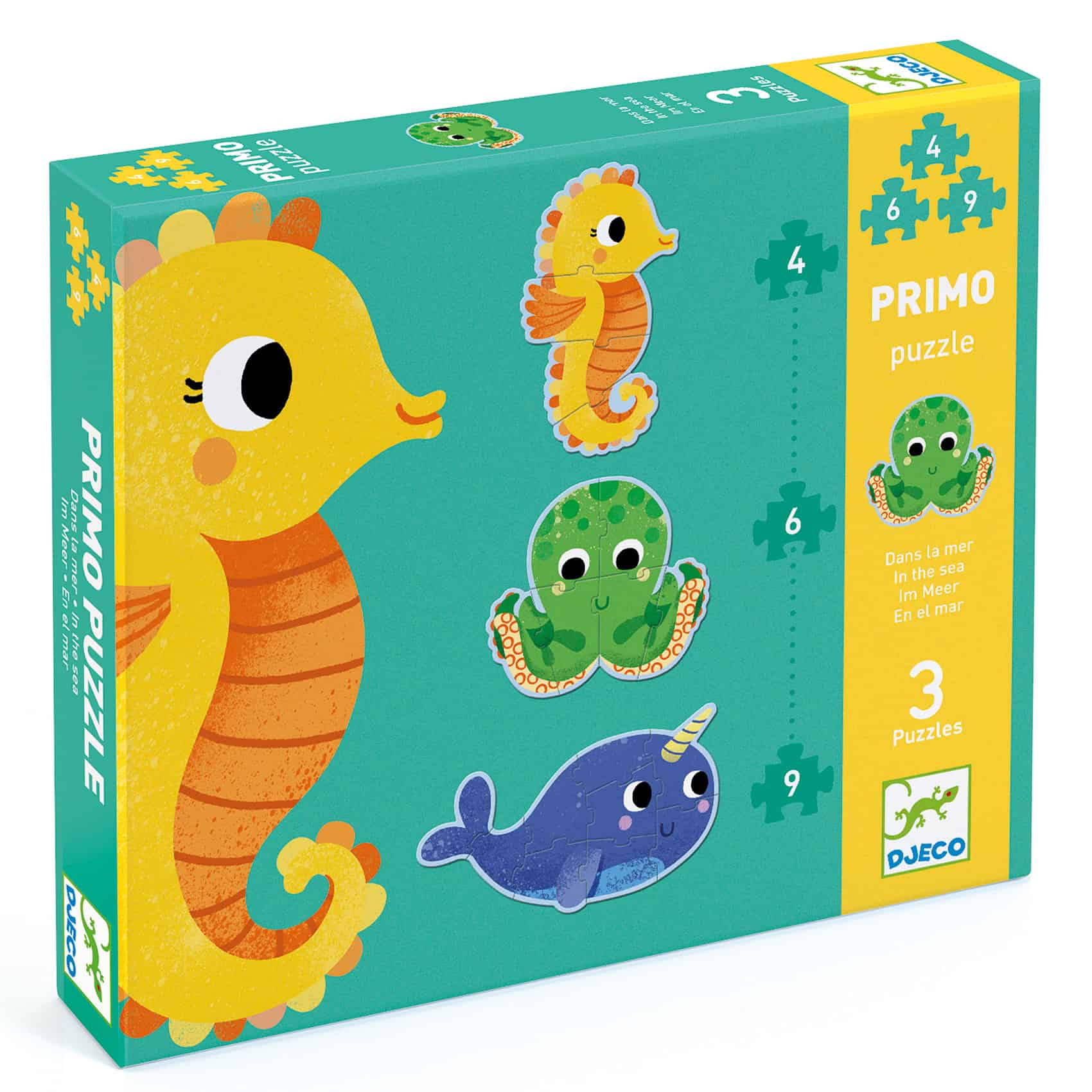 Mit dem Riesenpuzzle „Im Meer“ von Djeco entdecken Kinder ab 2 Jahren spielerisch die bunte Welt der Unterwasserwelt. Das Set besteht aus drei einzeln nutzbaren Puzzles mit steigendem Schwierigkeitsgrad (4, 6 und 9 Teile), die perfekt auf die Entwicklung kleiner Kinderhände abgestimmt sind.