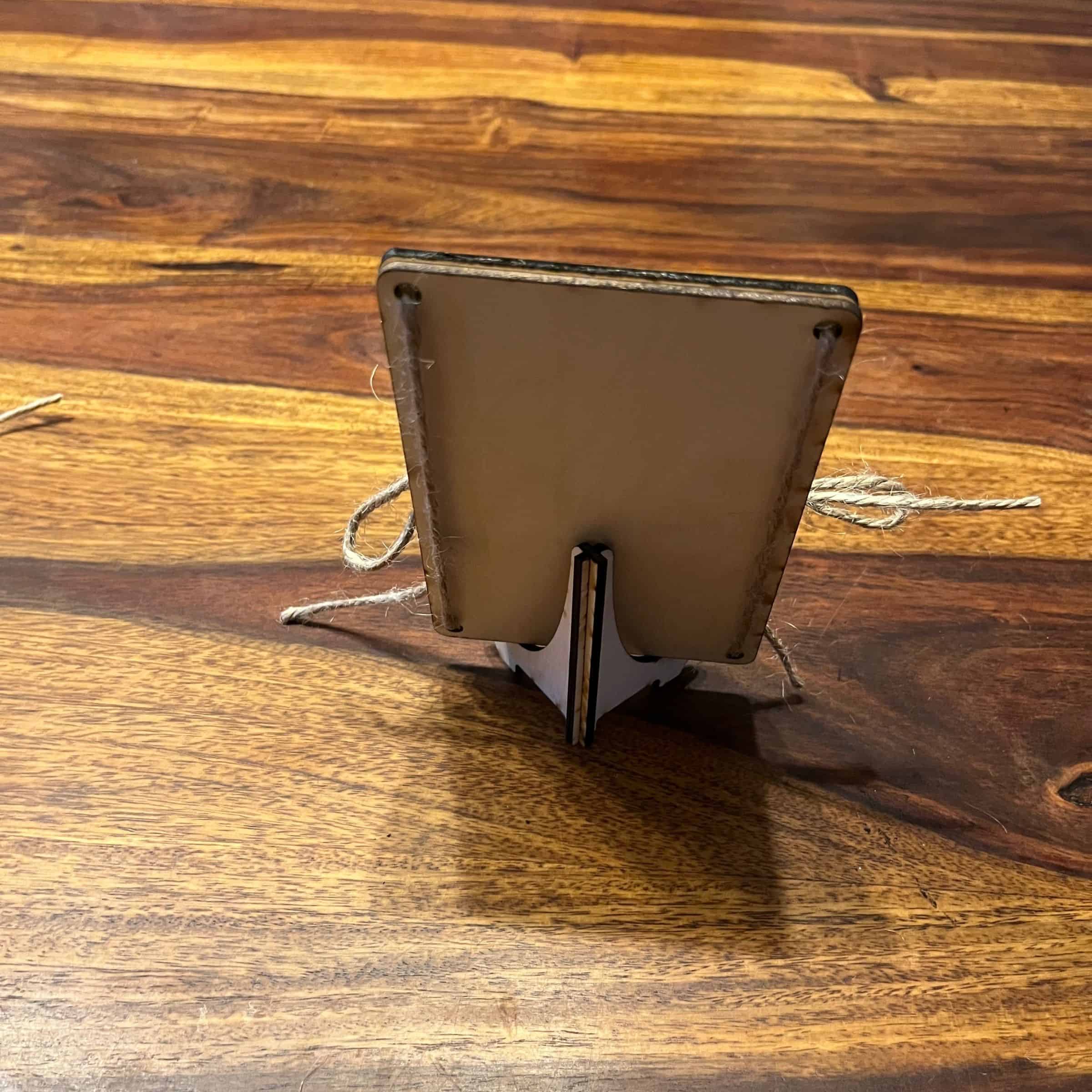 - Ausführung: zwei Holzplatten (Vorder- & Rückseite)