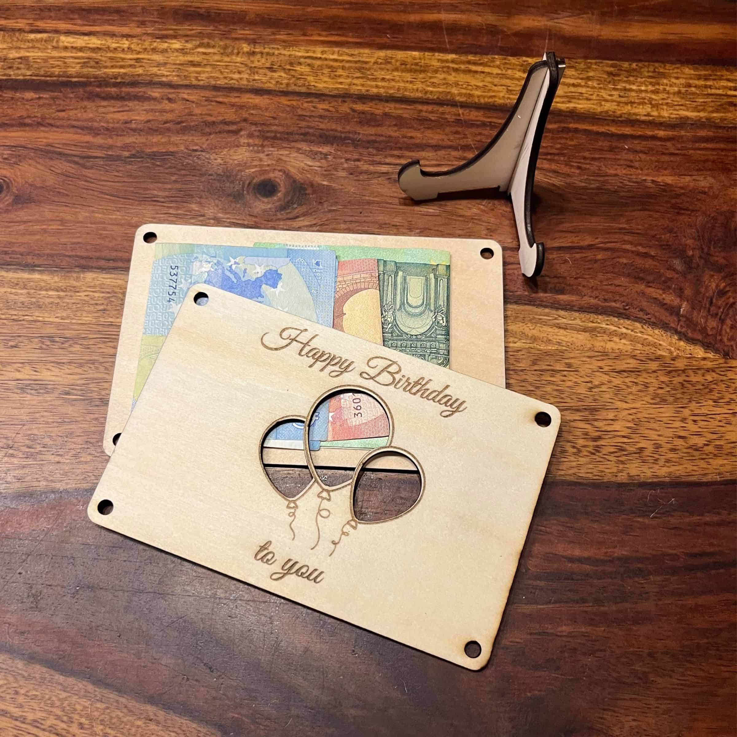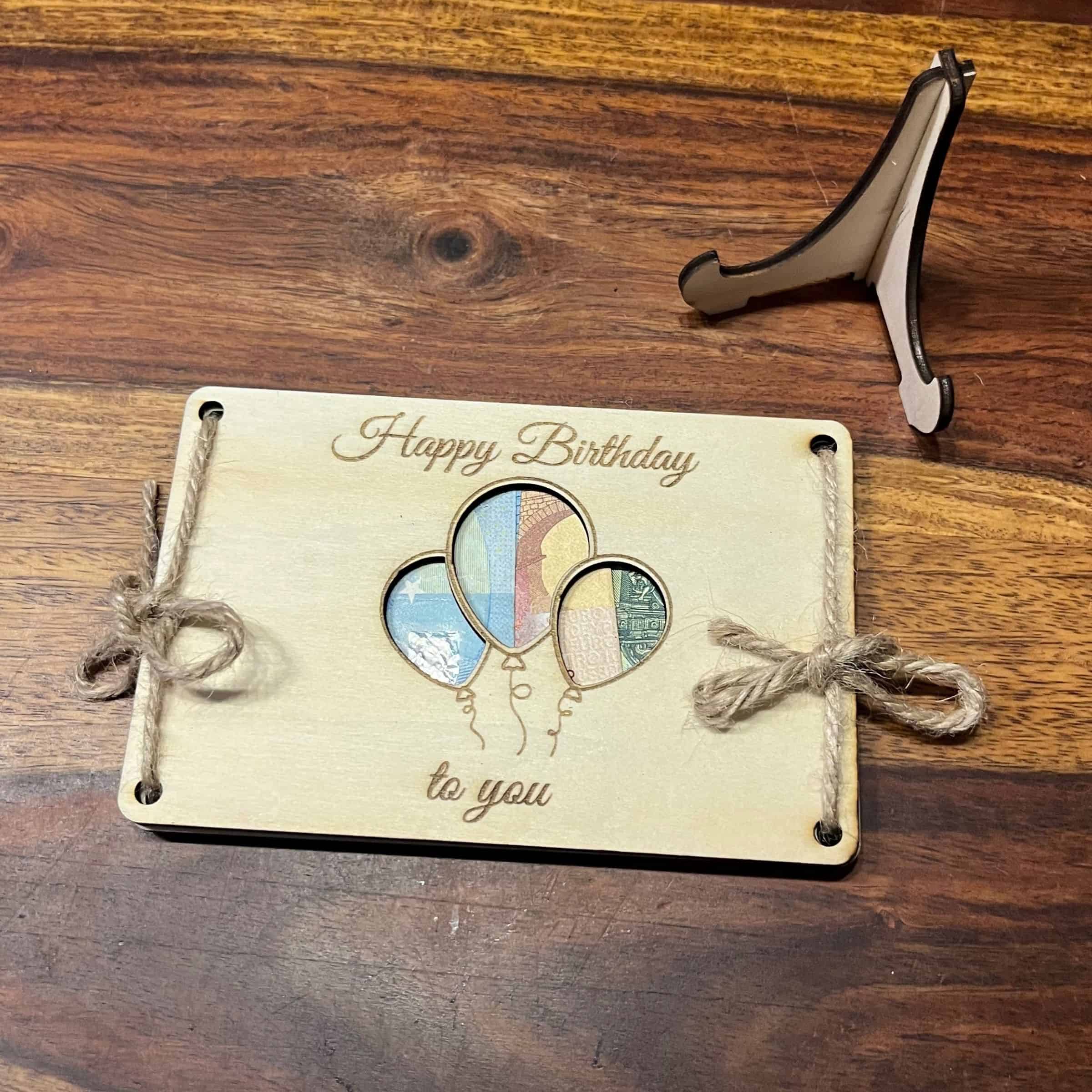 Diese kleine Holz-Geldgeschenkkarte eignet sich perfekt als Geburtstagsgeschenk für Kinder, Jugendliche oder Erwachsene und ist eine stilvolle Alternative zur klassischen Karte.