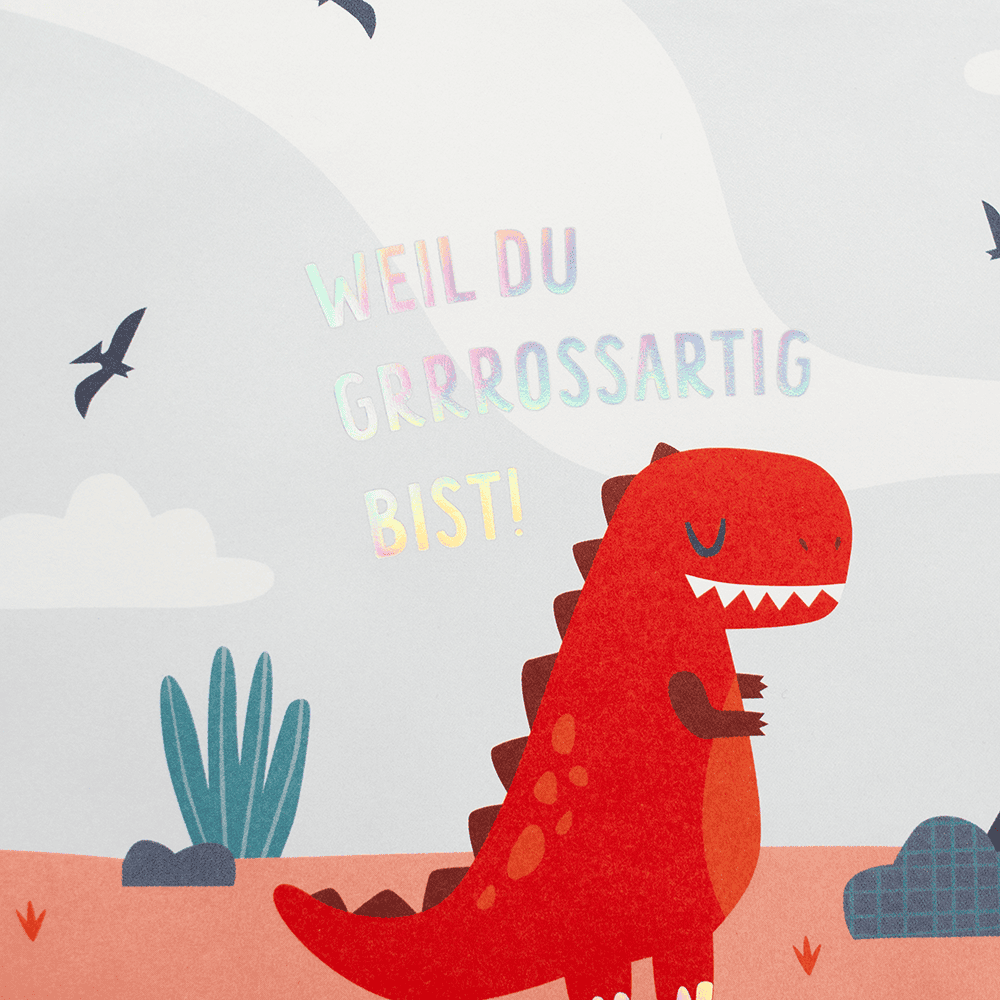 Diese fantasievolle Geschenktüte mit einem knallroten Drachen ist ein echter Hingucker und bringt schon beim Überreichen ein breites Lächeln aufs Gesicht. Der freundliche Drache und der verspielte Spruch „Weil du grrrossartig bist“ machen sie zur idealen Verpackung für kleine Überraschungen – sei es zum Geburtstag, Schulanfang oder einfach nur so.