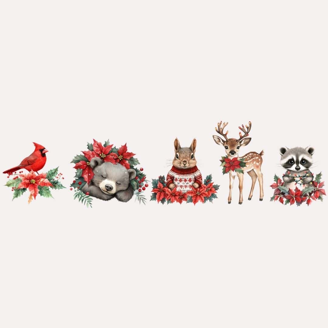- Hochwertiger, langlebiger DTF-Druck mit Waldtiere und Weihnachtsstern