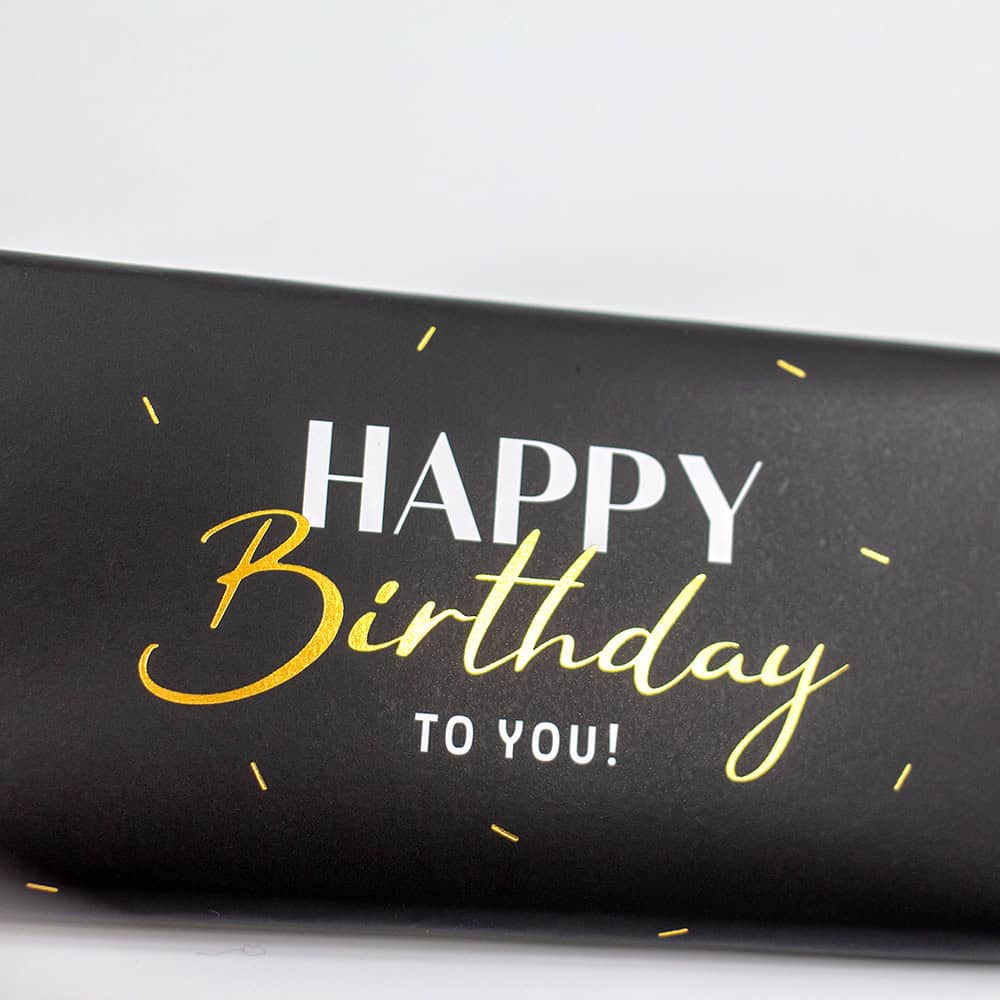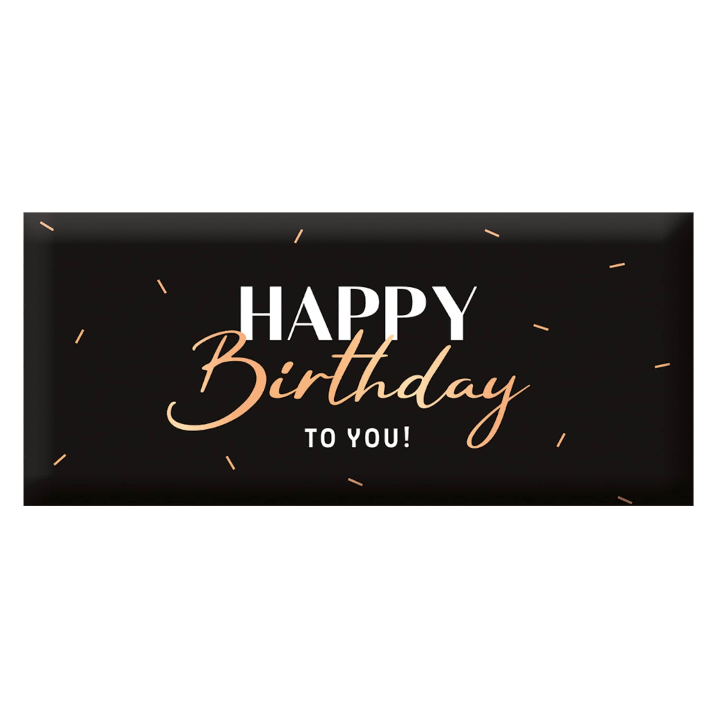 Diese elegante Mini-Schokoladentafel ist ein echter Blickfang: In schwarzer Verpackung mit goldglänzender Schrift überbringt sie stilvoll süße Geburtstagsgrüße.